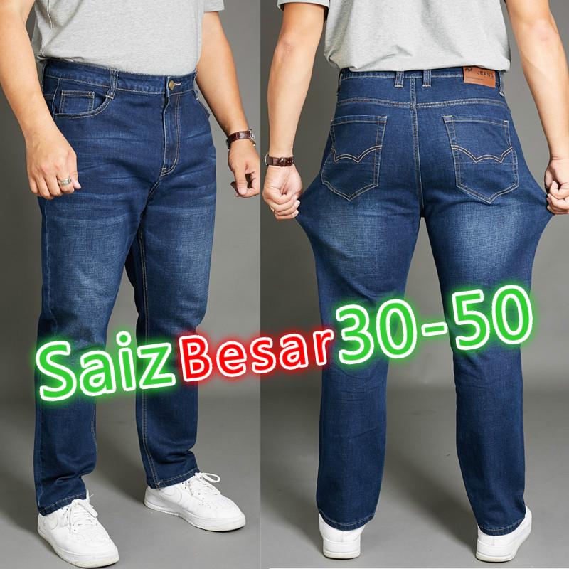 Seluar Jeans Pinggang Tinggi Seluar Lelaki Saiz Besar Seluar Lelaki Gemuk Kasual Seluar Panjang Lemak Bergaya 30 50 Shopee Malaysia
